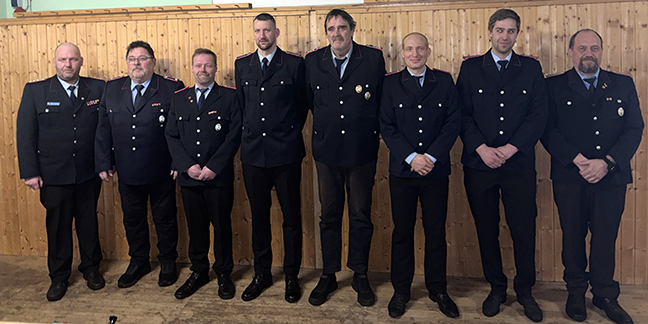 An Ehrungen sah die Veranstaltung die von Jürgen Schönfeld und Uwe Schwarzkopf für vierzigjährige sowie für Rainer Gieras für fünfzigjährige Mitgliedschaft. Felix Bolle, Bernt Heiseke und Tim Schönfeld wurden zu Feuerwehrmännern befördert.