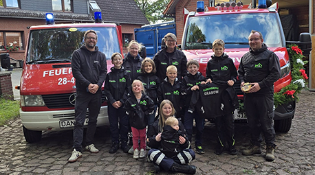 Grabow (mb) Eine besondere Spende erhielt im September die Floriangruppe Grabow um Floriangruppenwartin Tatjana Behn: Die Firmen Schütte Baumarkt GmbH & Roggan KG und Meyer Landschaftsbau überreichten dem jüngsten Nachwuchs der Feuerwehr 13 hochwertige Hardshelljacken.