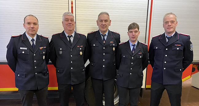 Befördert wurden auf der Jahreshauptversammlung zudem Marc Burmester zum Hauptfeuerwehrmann sowie Christopher Schneider Peralta und Sascha Haaker zum Ersten Hauptfeuerwehrmann. Zum Löschmeister stieg Norbert Klafak sowie zum Oberlöschmeister Christopher Webs und Matthias Ebel auf. Ortsbrandmeister Sascha Reeck verabschiedete Wilhelm Meyer nach über 47 Jahren bei den Aktiven mit einem dreifachen „Gut Wehr“ in die Altersabteilung.